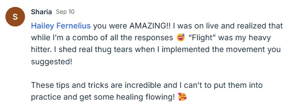 "I can't even tell you guys. My mind is blown. Hailey basically talked us through how we have these set ways that we deal with money and issues in business and people pleasing tendencies and she had these four archetypes. And then she gave us literal exercises to do at our desks and phrases to rewrite the stories in our brain... You can't strategy your way out of mindset. It was so valuable.